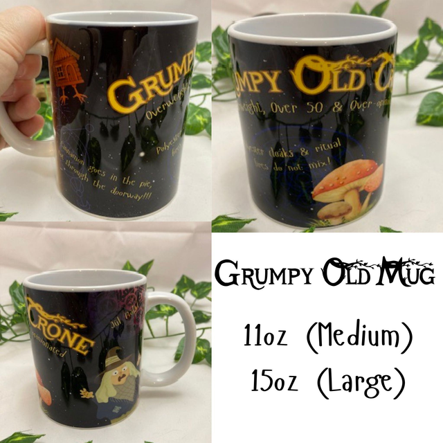 Designed my me, and featuring the Grumpy Old Crone little witch from the beginning and end of the videos, also Baba Yaga's hut and a couple of ... well... opinions....